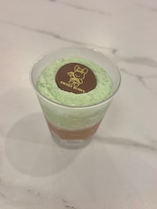 ホワイトチョコムースに、ミントシロップを混ぜ込みココアクッキーやカカオニブで食感をプラス。